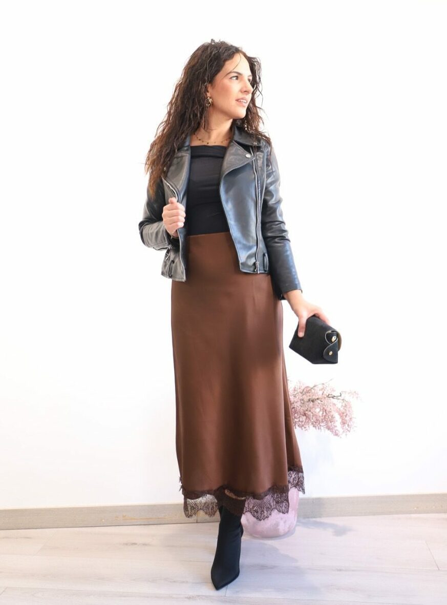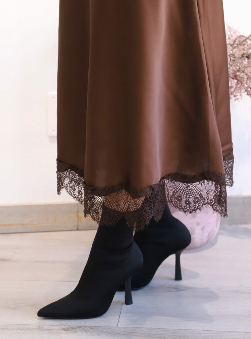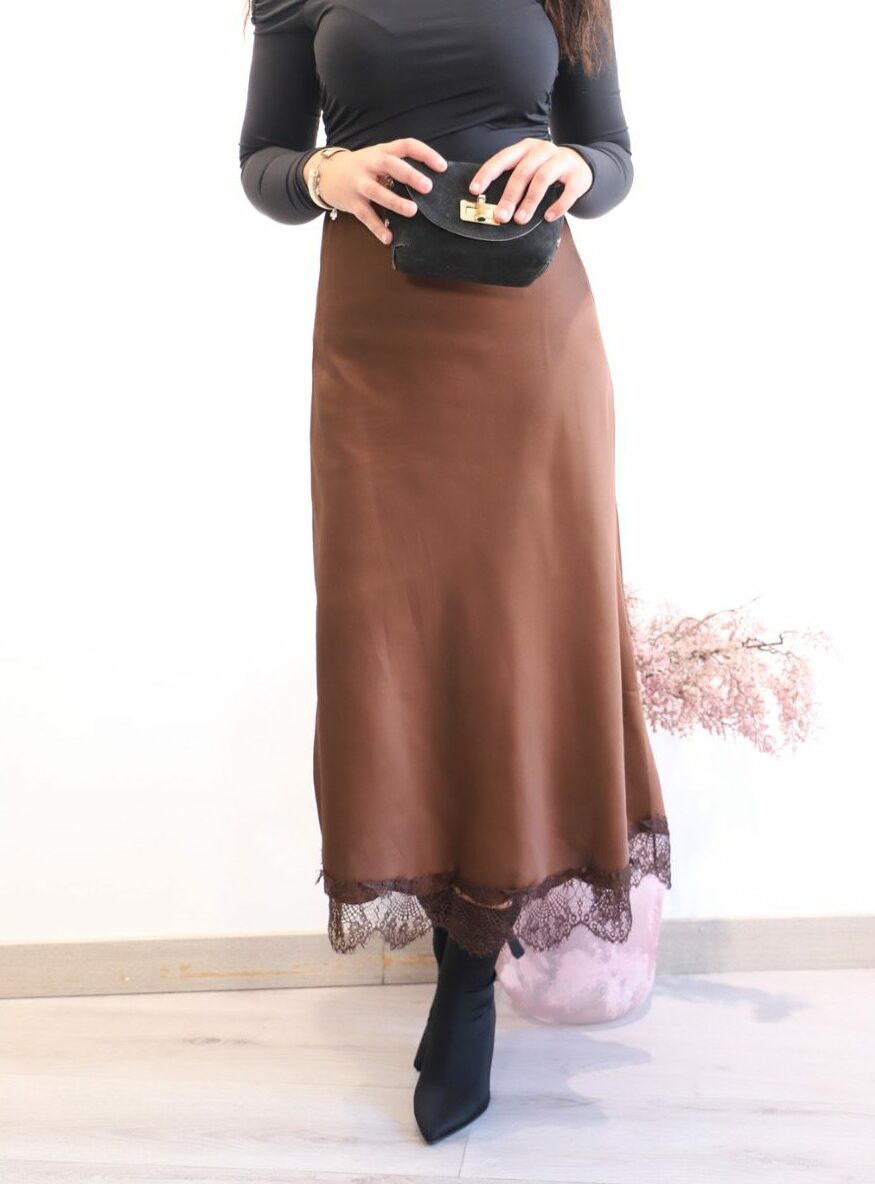 FALDA SATINADA ENCAJE CHOCOLATE