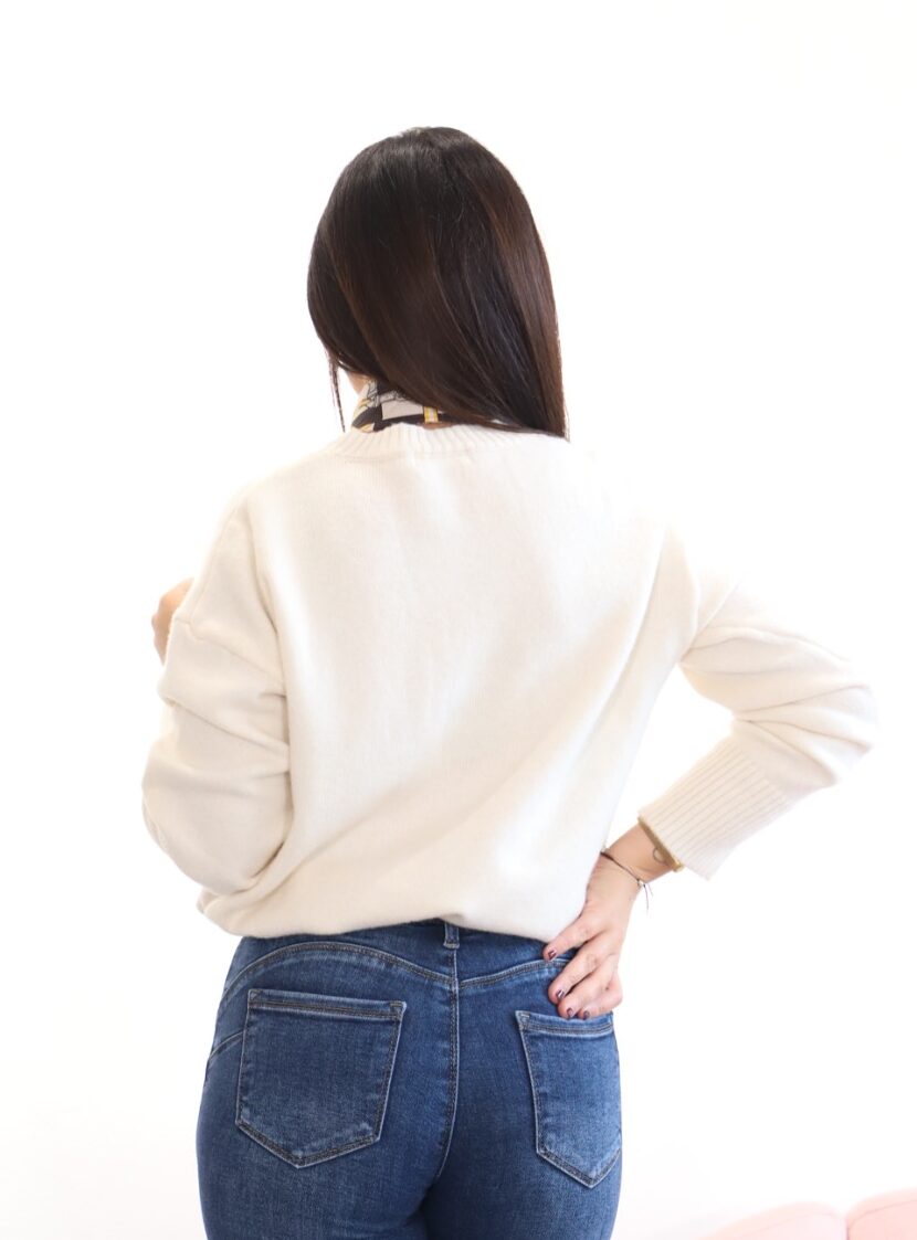 Jersey de punto gordo, con cuello aredondo y elástico en la parte de abajo.